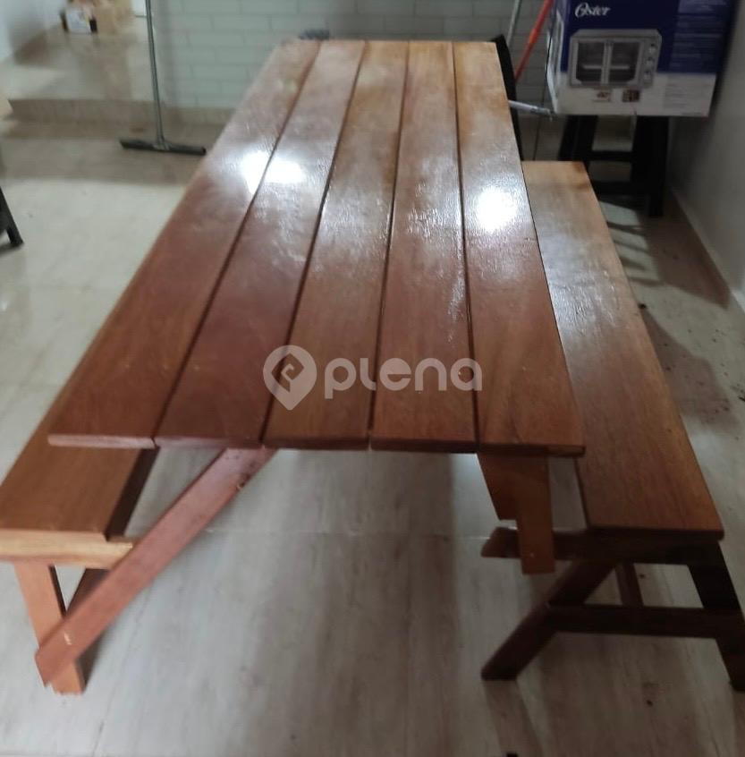 Cozinha planejada e com mesa-banco,